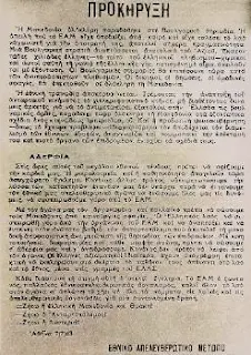 Στις 7 Ιούλη του 1943 μια προκήρυξη του ΕΑΜ