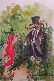 Η αθώα Κοκκινοσκουφίτσα, δεν ήξερε τι ζώο ήταν ετούτος, ο καλοντυμένος Αρχοντόλυκος, μα δεν τον φοβήθηκε καθόλου.