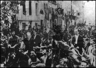 Το 12ο Σύνταγμα του ΕΛΑΣ, παρελαύνει στην ελεύθερη Πάτρα και οι κάτοικοι γεμίζουν τους δρόμους, υποδέχονται με λουλούδια τους απελευθερωτές τους.